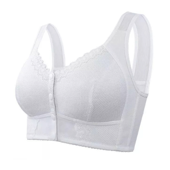 Um sutiã que te permite se sentir confiante e confortável, pois não possui aros e bojos que incomodam e seus botões são resistentes e reforçados. É o sutiã perfeito para mulheres que querem manter uma postura saudável sem abrir mão do conforto na sua rotina diária mas também estar bonita e confiante todos os dias.